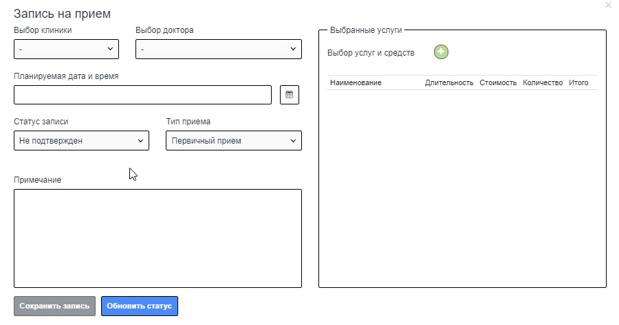 Если клиент не уверен, на какую именно процедуру ему нужно, или не знает точного названия - можно сделать пометку в поле Примечание. Врач сможет поправить заявку в учётной системе, все изменения отразятся в amoCRM