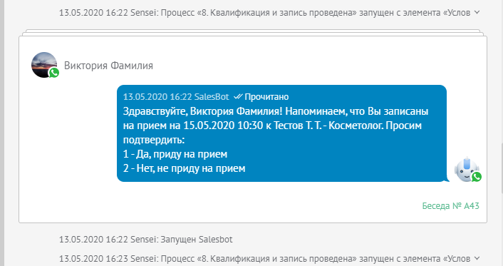 Чтобы клиенты не забывали про визиты и заранее предупреждали об изменившихся планах, подтверждения визита с них собирает чат-бот